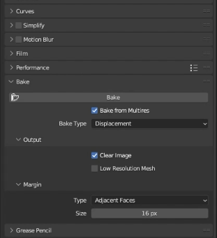 [ Bake from Multires ]のチェックを入れ、[ Bake Type ]を[ Displacement ]に指定します。