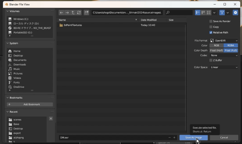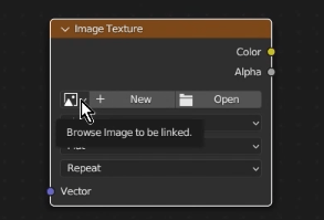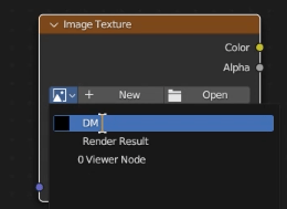 [ Image Texture ]ノードのピクチャアイコンをクリックし、先ほど命名した「DM」を選択します。