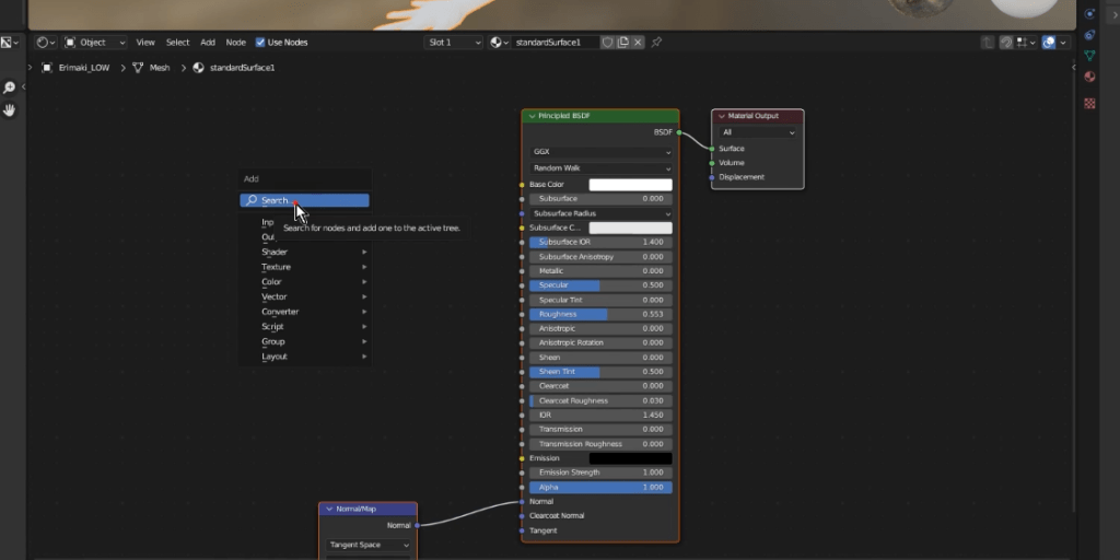 ノードの検索ボックスが出るので、「image texture」と入力して[ Image Texture ]ノードを作成します。