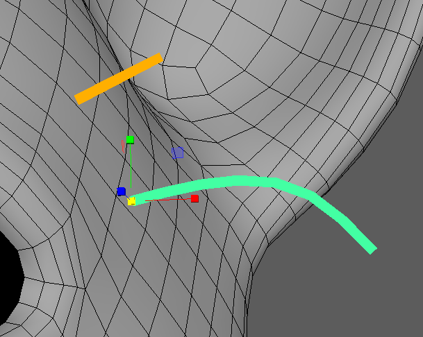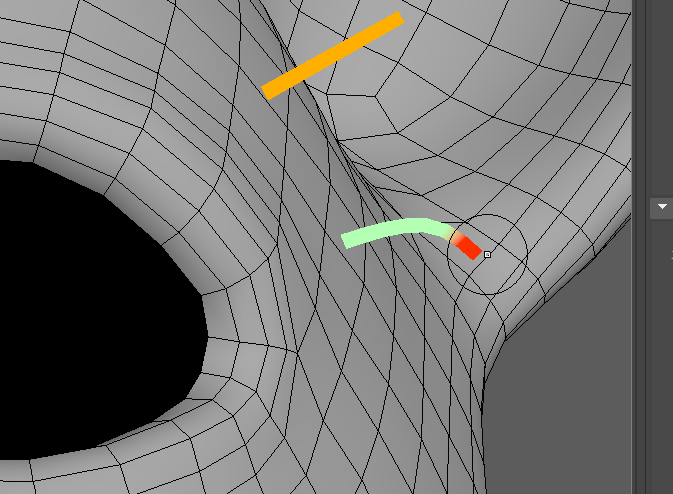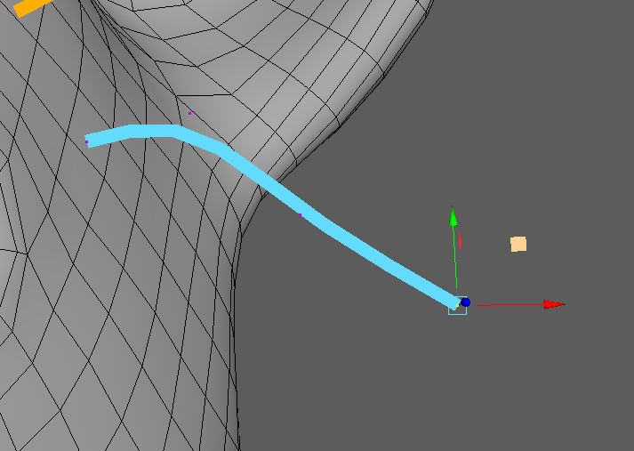 また、ガイドはコントロールポイントと呼ばれるカーブのポイントの位置変更によっても変形する事ができます。ビューポート上で右クリック長押し、コントロールポイントにカーソルを合わせて離すとモードが切り替わります。ガイドの長さや形をコントロールポイントで変形させても良いです。
