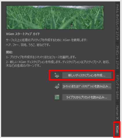 XGenエディタで新しいディスクリプションを作成‥を押します。