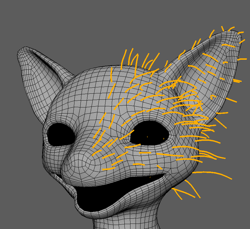 以上のツールの機能を知っておくと、毛のガイドの配置・変形と、簡単な毛の生成が可能です。