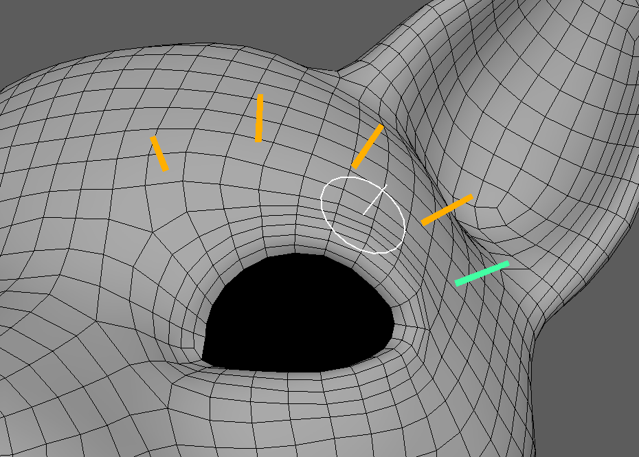 Bキーのブラシ影響範囲と連動しているため、Bキー長押し+左クリックスライドで変形の影響範囲を調節できます。
