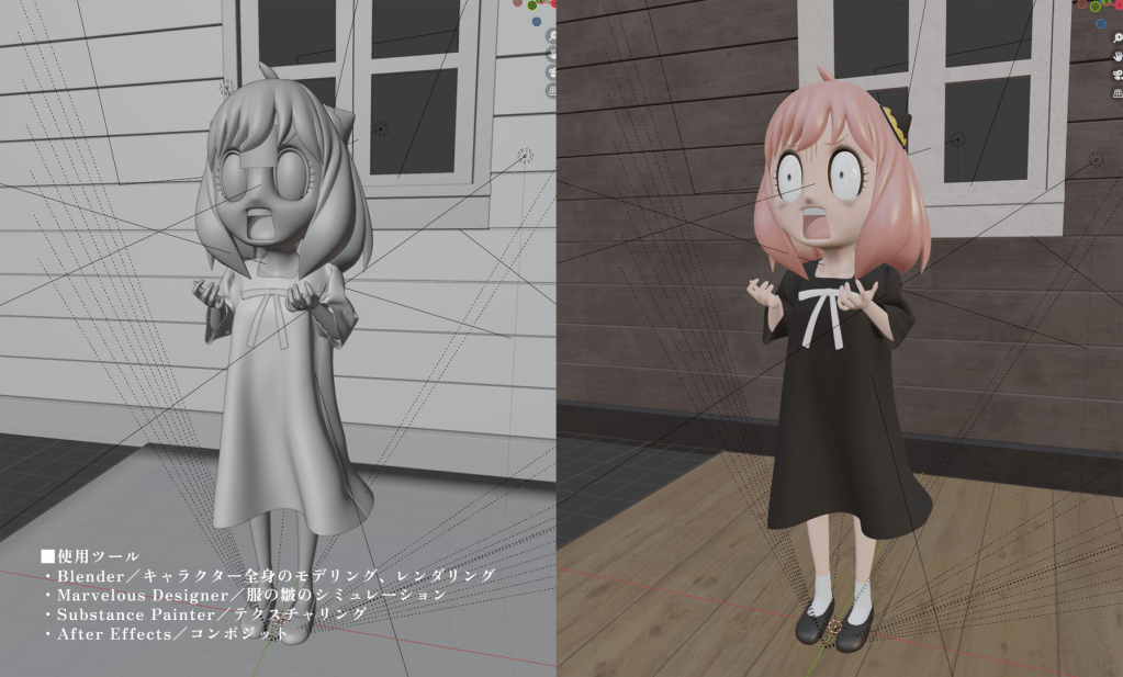 I made Anya from the anime “SPY×FAMILY”. The texture was set with the aim of making it look like a figure.