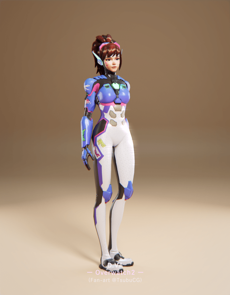 FPSゲーム「OVER WATCH 2」に登場するD.VAを作成しました。3万ポリゴン以下の軽量なモデルにし、Unreal Engine上で動くようセットアップもしました。