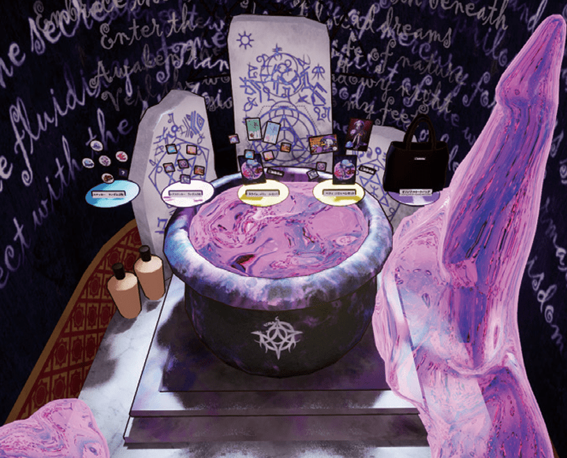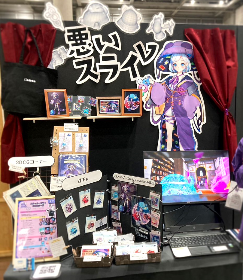 メインキャラクターのコンセプトである「スライムの錬成実験」をテーマに、実験室をイメージした空間としてデザインしました。