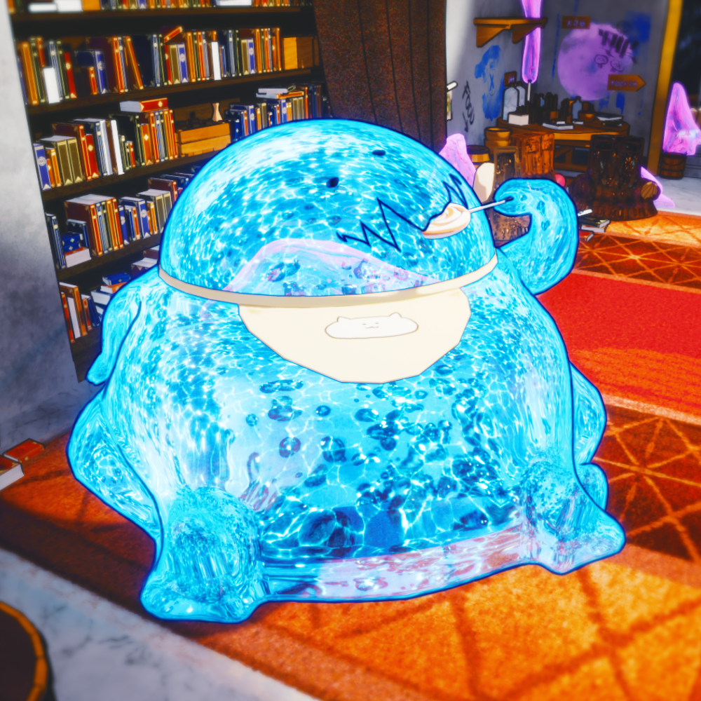シーン内には4種類のスライムモンスターを配置しており、それぞれに簡単な呼吸モーションを設定することで、静的なオブジェクトではなく生物としての存在感を表現しています。