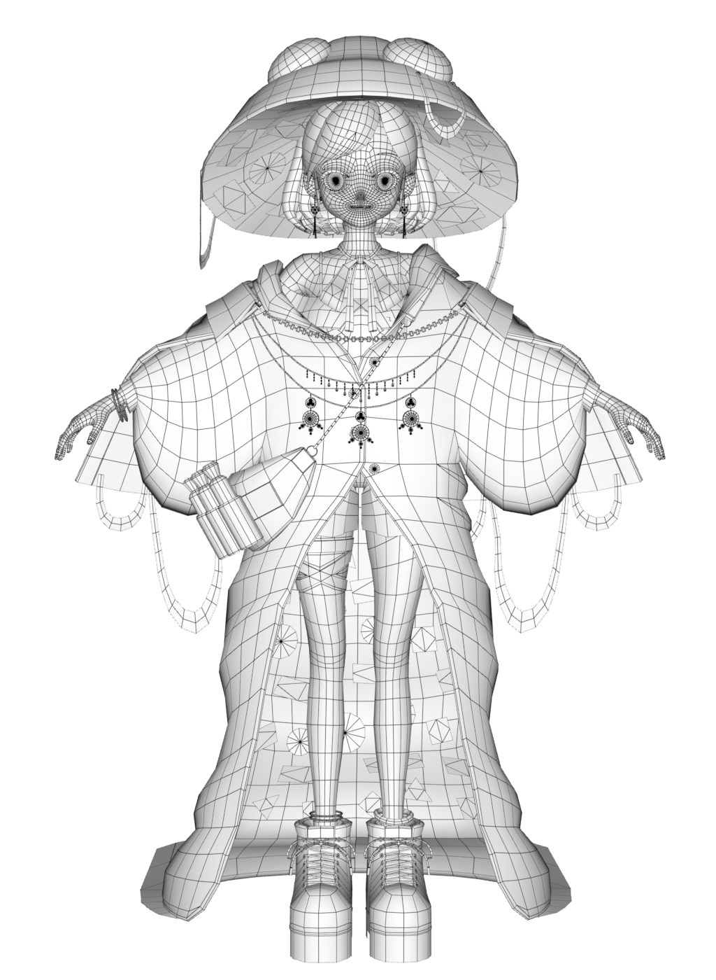 UE5上で問題なく動作することを前提としたリアルタイムモデルとして制作しているため、ポリゴン数は過度に制限せず、シルエットやディテール表現とのバランスを重視しました。