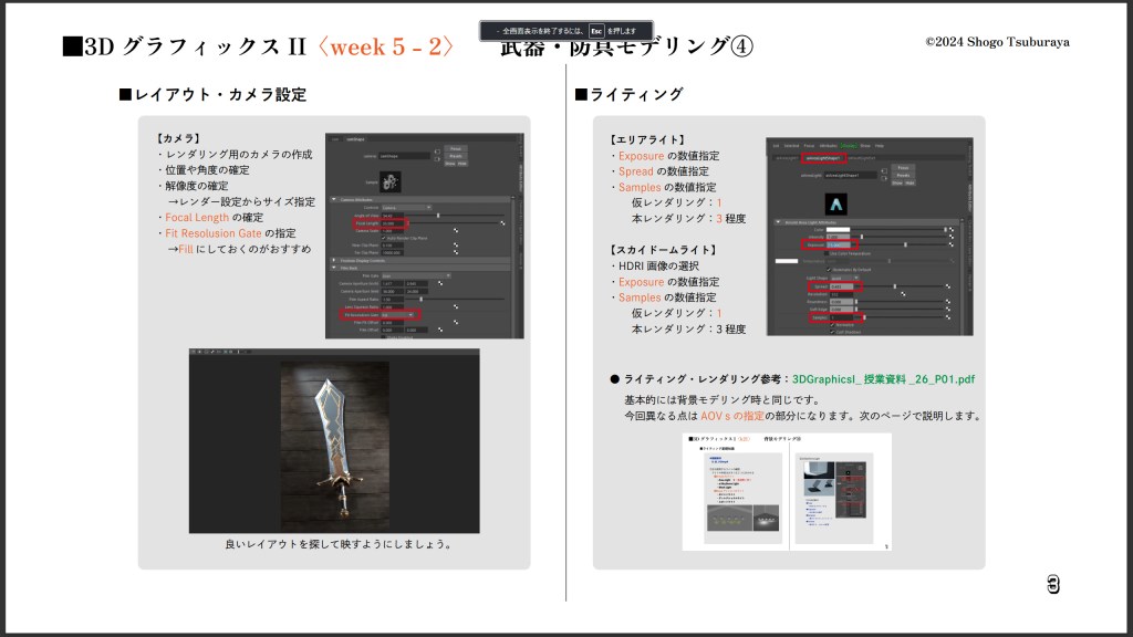 CG科講師業の為に作成した武器モデリング制作のサンプル作品です。音声付きの動画教材を13本、PFD資料多数作成しました。